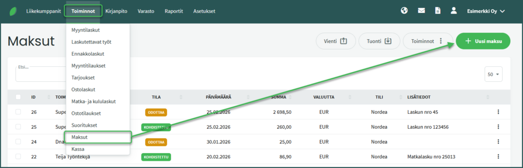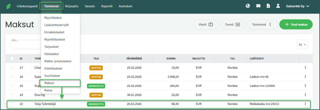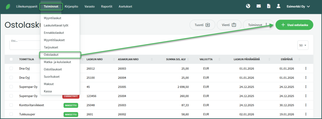 - Ostolaskuihin ja maksuihin