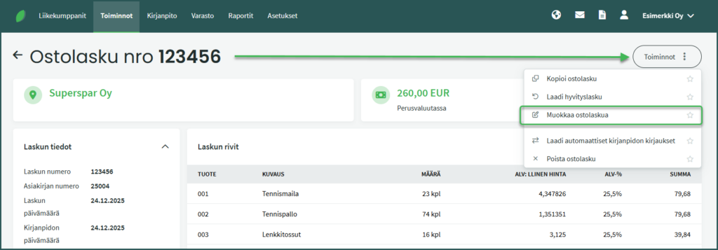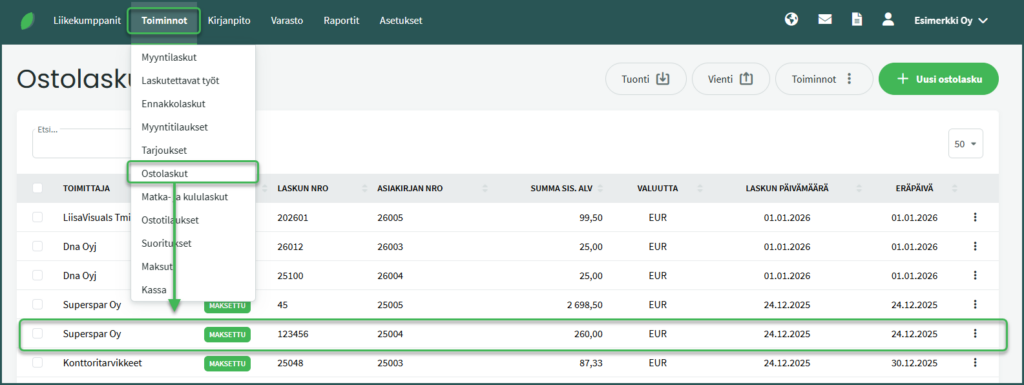 - Kirjanpidon kirjauksiin