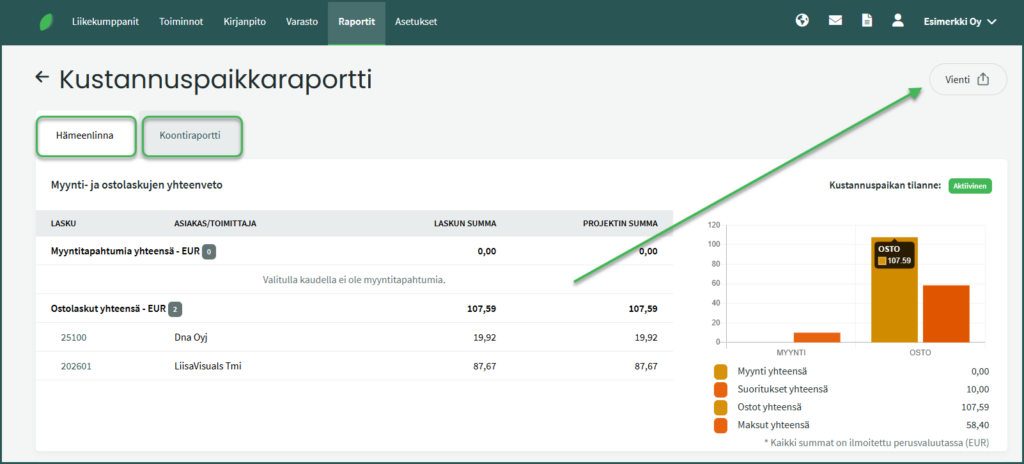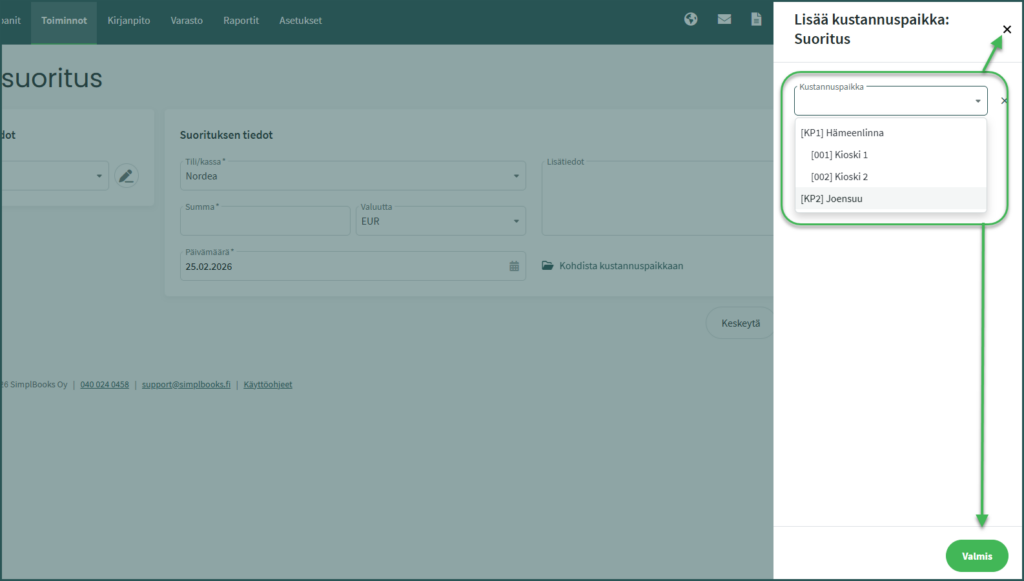 Tässä ohjeessa kerrotaan, miten kustannuspaikkoja käytetään SimplBooksissa ja miten saat kustannuspaikkakohtaisia raportteja.