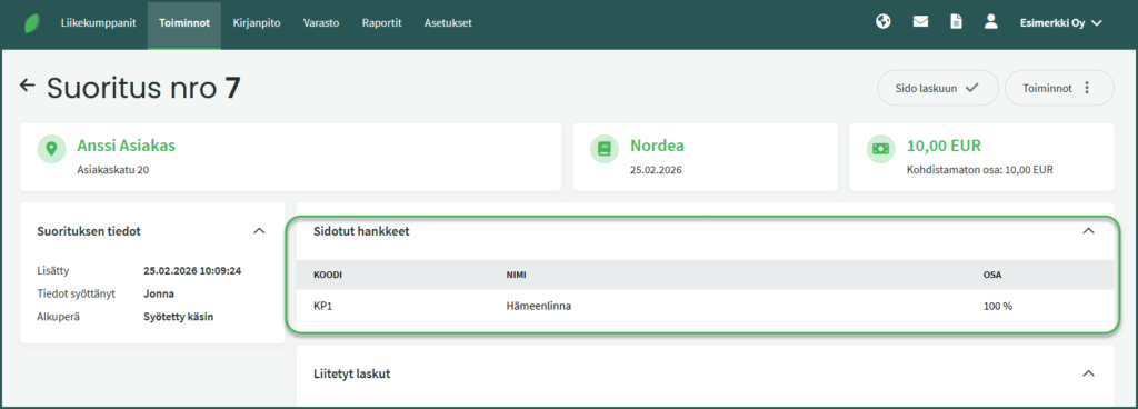 - Myyntilaskuihin ja suorituksiin