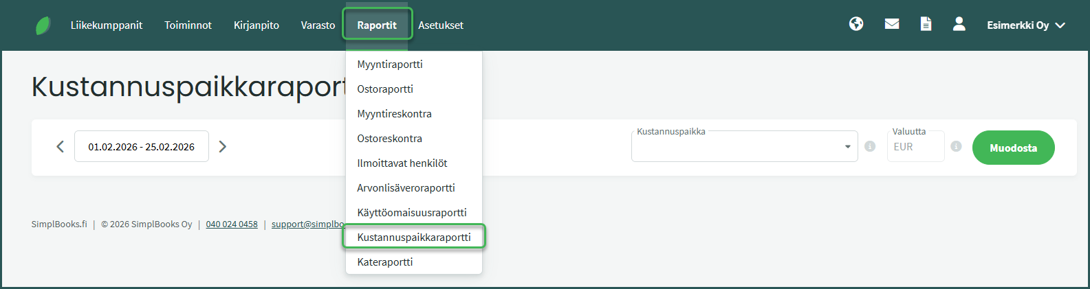 Tässä ohjeessa kerrotaan, miten kustannuspaikkoja käytetään SimplBooksissa ja miten saat kustannuspaikkakohtaisia raportteja.