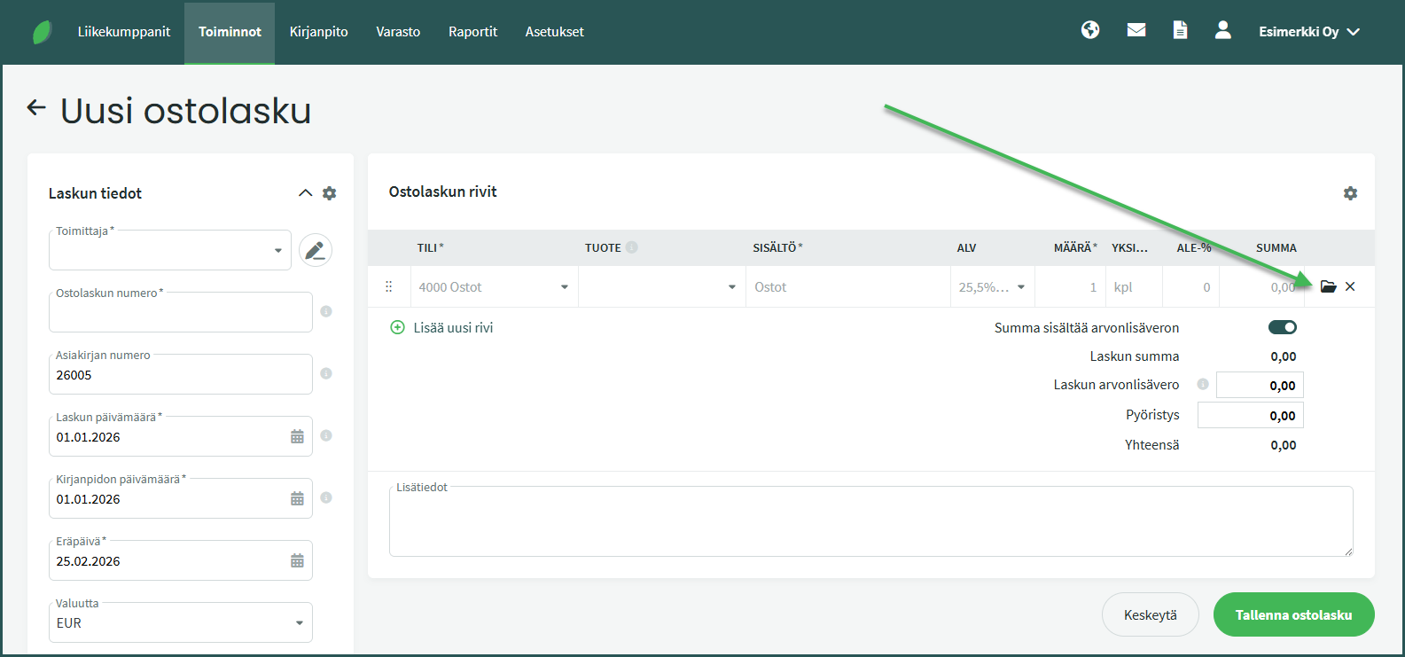 - OSA 3 – Kustannuspaikan lisääminen uudelle ostolaskulle
