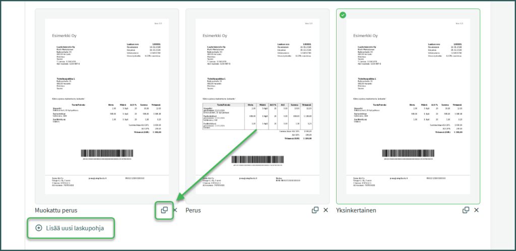 2. Luo uusi pohja kopioimalla olemassa oleva laskupohja tai klikkaamalla “Lisää uusi laskupohja“