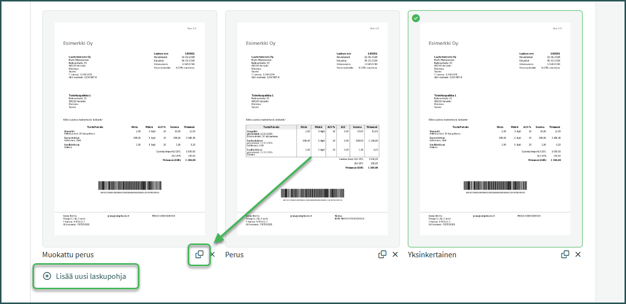 2. Luo uusi pohja kopioimalla olemassa oleva laskupohja tai klikkaamalla “Lisää uusi laskupohja“
