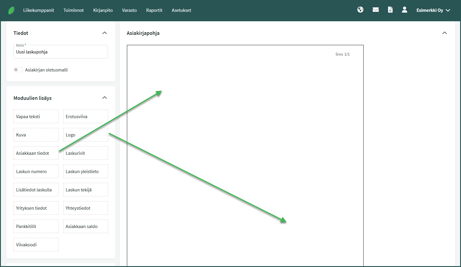 - Sinulla on aputoiminimiä ja tarvitset niille omat laskupohjat.