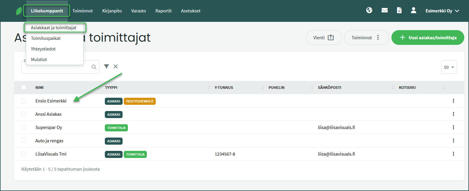 2. Valitse haluamasi asiakas ja klikkaa oikealta “Muokkaa asiakasta/toimittajaa”