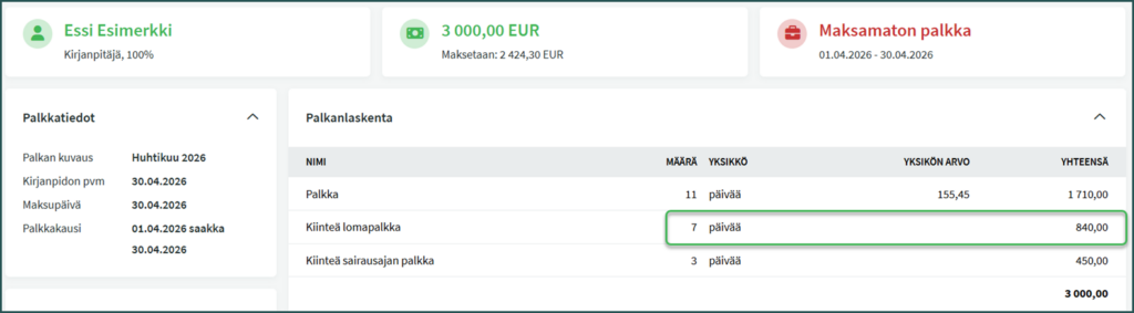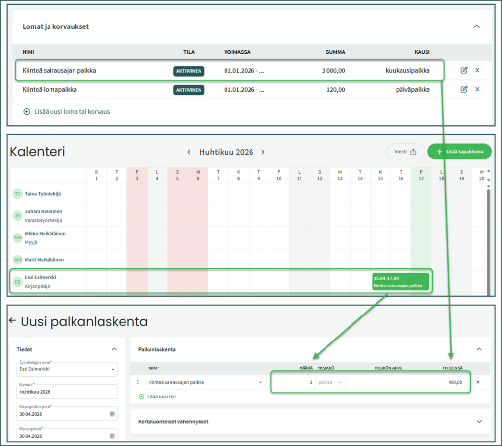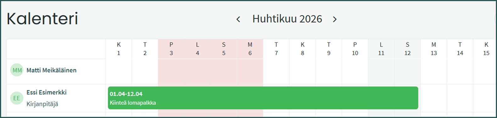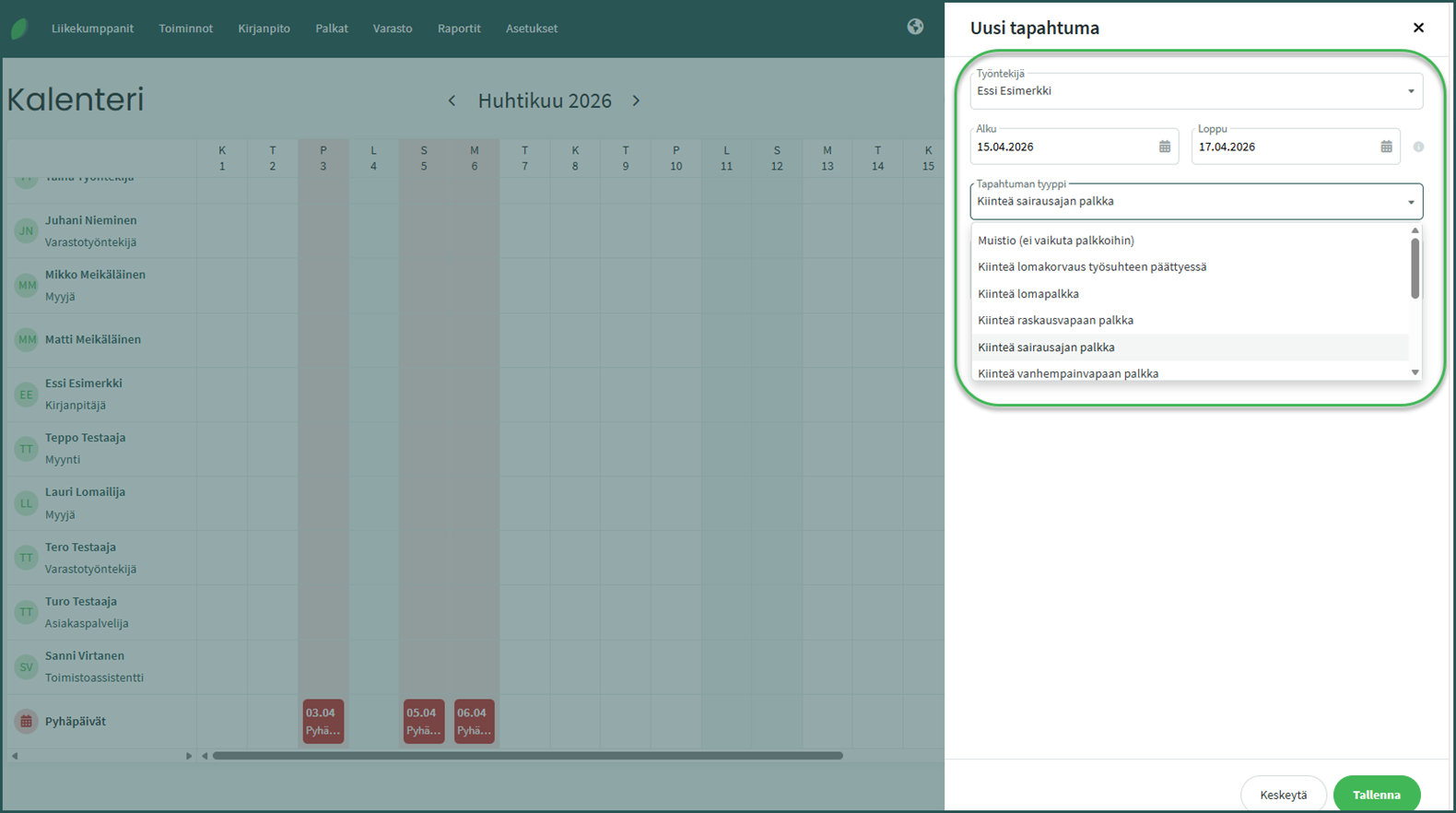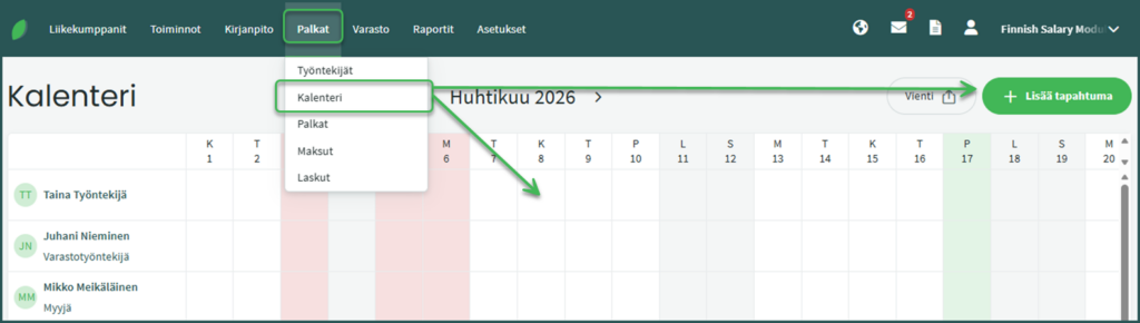 Kalenterin löydät kohdassa Palkat > Kalenteri.