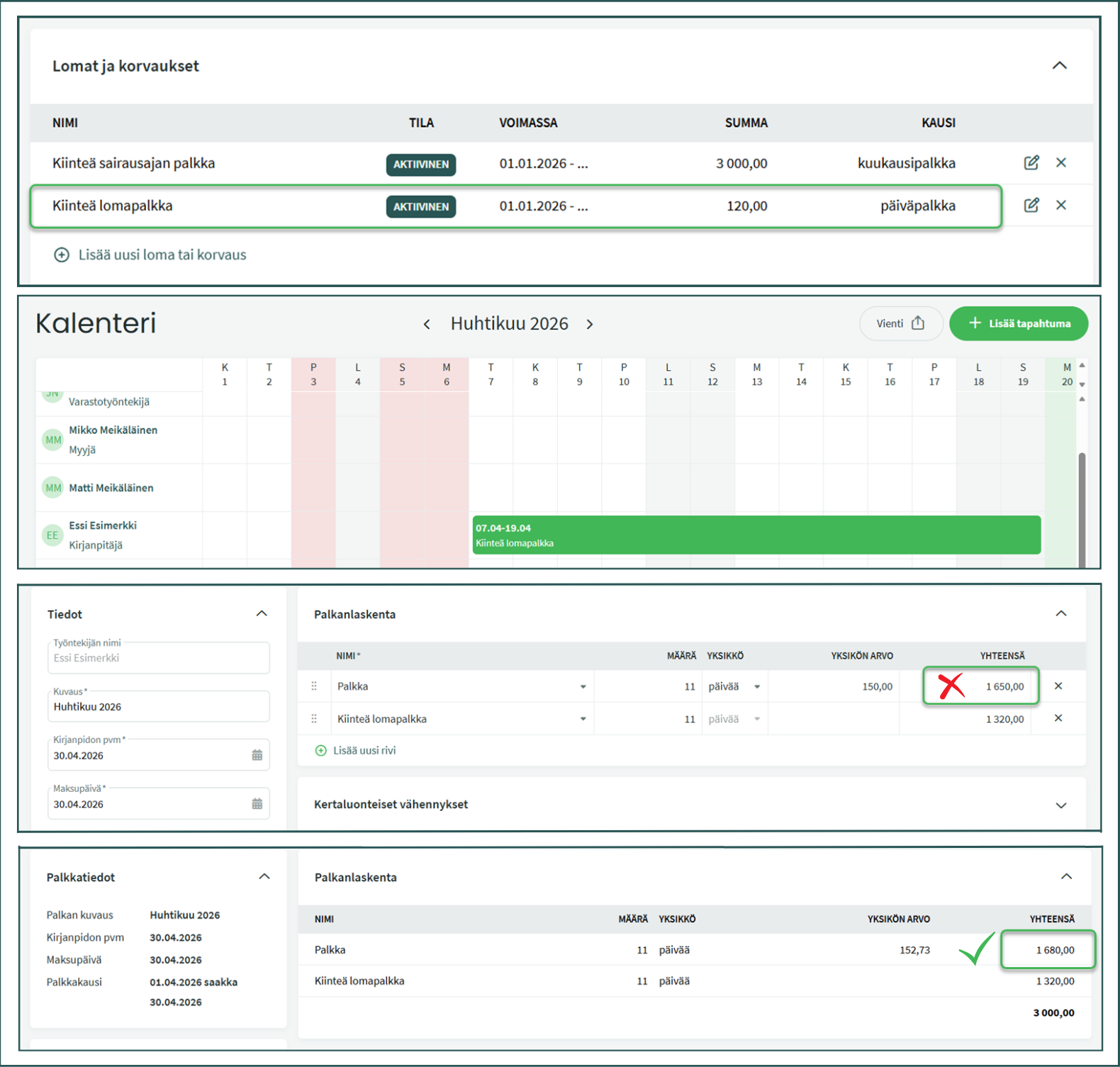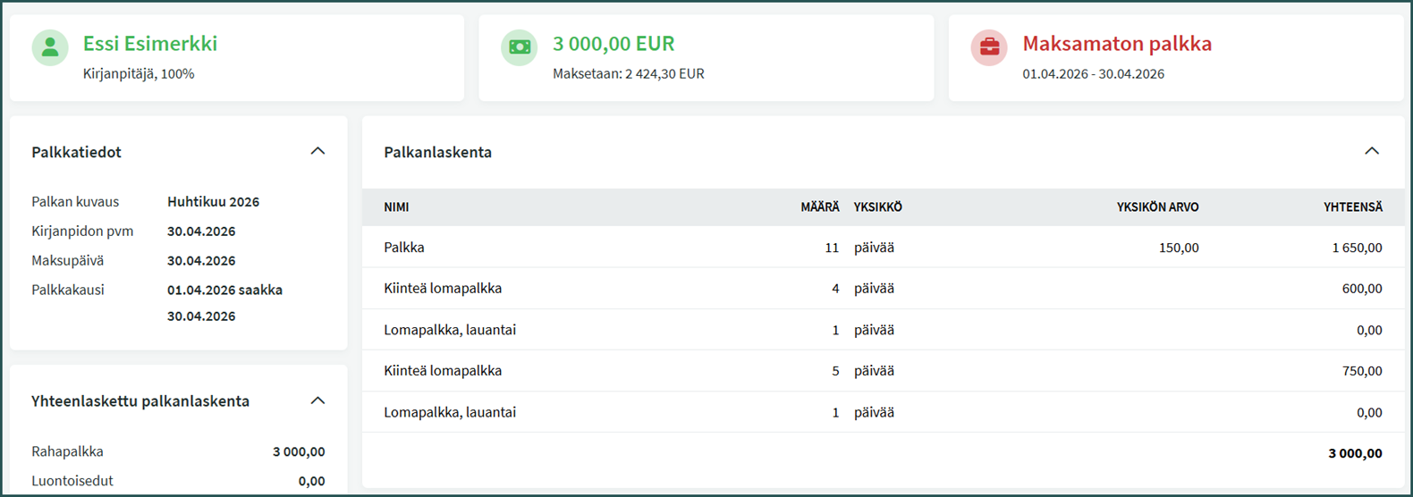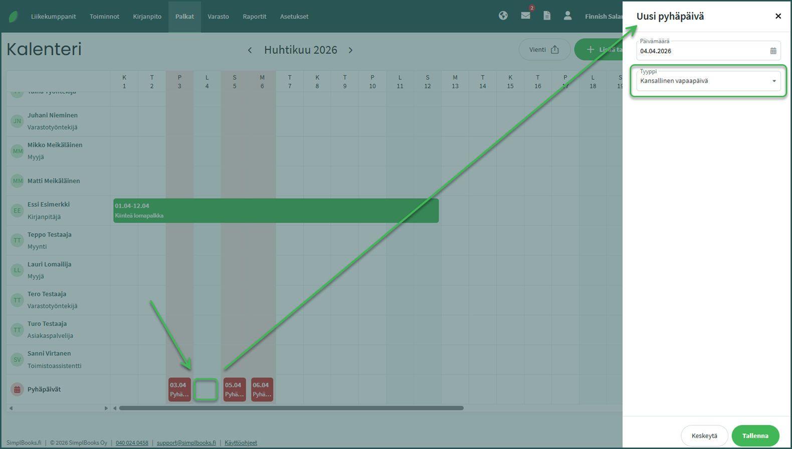 📢 Huom! Ennen palkanlaskennan aloittamista, tarkista palkkojen alkuasetukset tämän ohjeen mukaan: Palkanlaskennan aloittaminen SimplBooksilla – SimplBooks Support