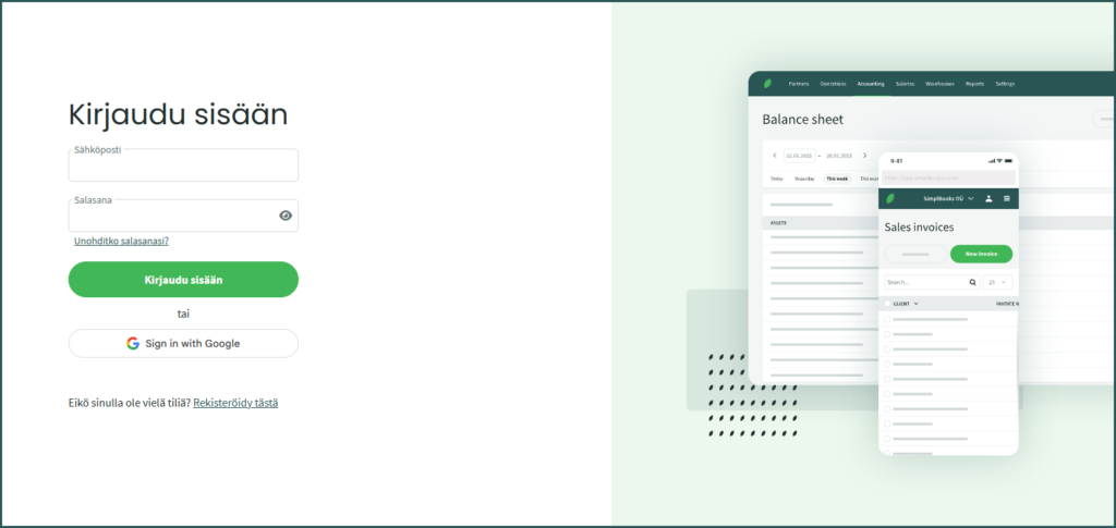 SimplBooksiin kirjaudutaan sähköpostiosoitteella. Kirjautumiseen käytettävä sähköpostiosoite on sama, jolla rekisteröit SimplBooks-käyttäjätilin.
