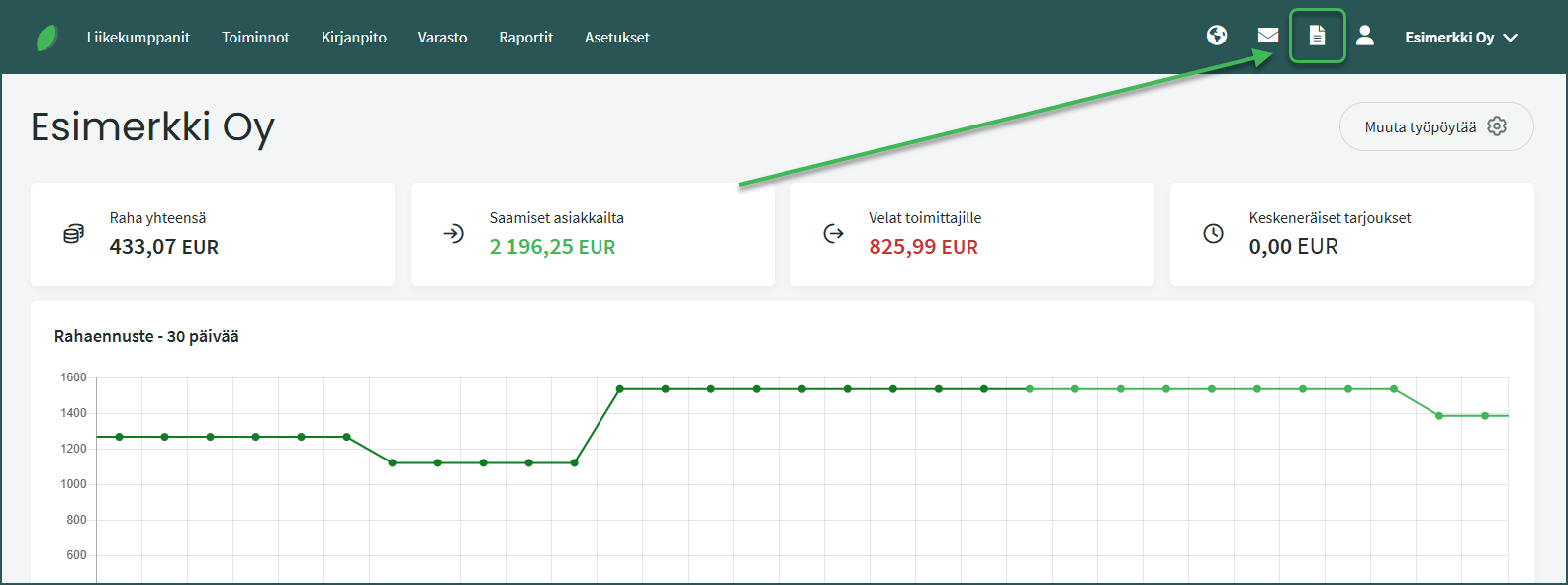 • Tuodut asiakirjat -näkymään pääset ylävalikon asiakirjakuvakkeesta.