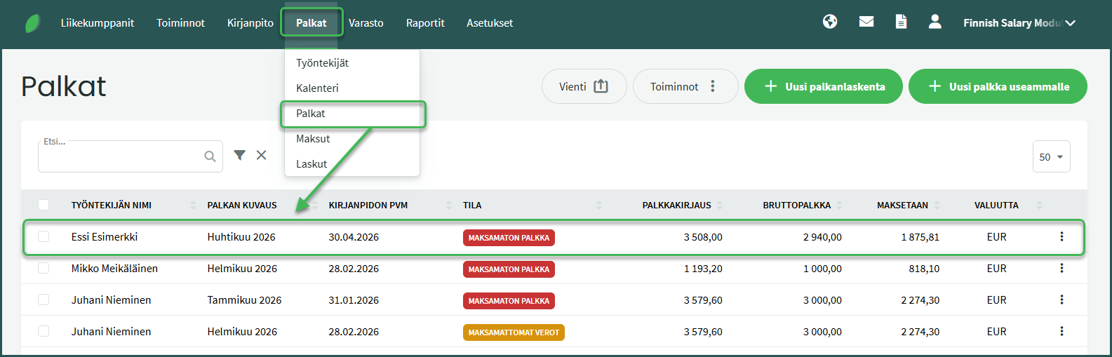 📢 Huom! Ennen palkanlaskennan aloittamista, tarkista palkanlaskennan alkuasetukset tämän ohjeen mukaan: Palkanlaskennan aloittaminen SimplBooksilla – SimplBooks Support