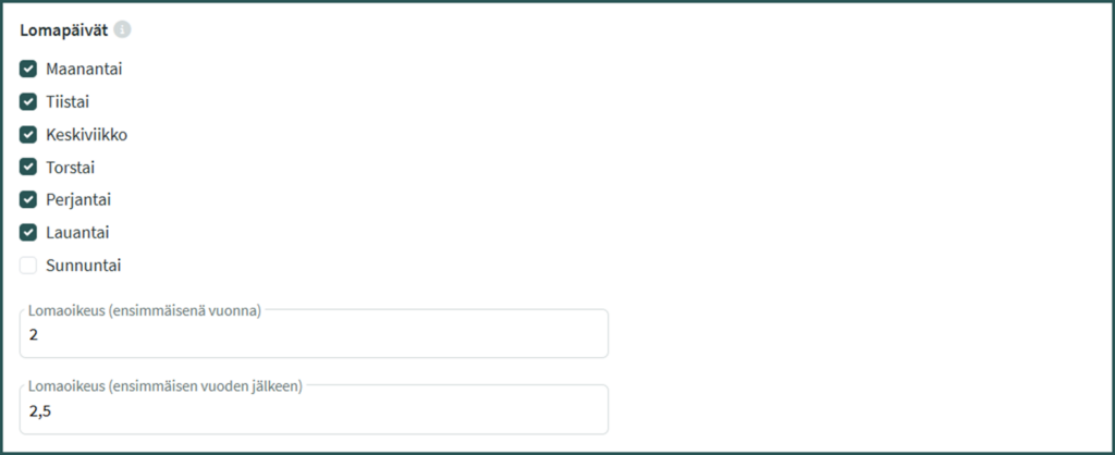- Lomapäivien asetukset