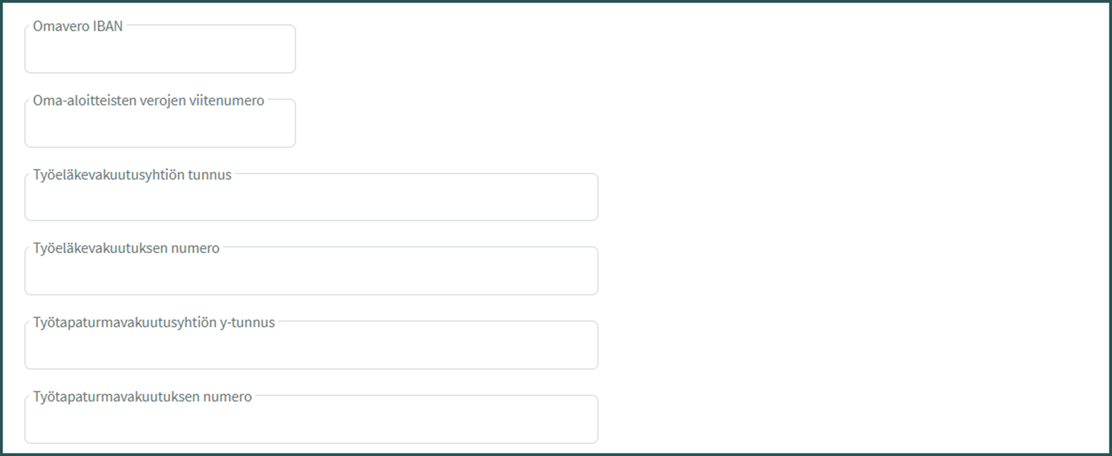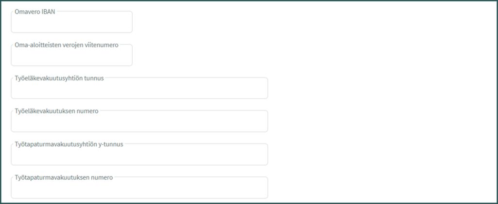 - Työtapaturmavakuutusyhtiön Y-tunnus – Sen vakuutusyhtiön Y-tunnus, jonka kanssa yrityksellä on tapaturmavakuutussopimus. Löydät tiedon esimerkiksi vakuutuskirjalta tai laskulta.